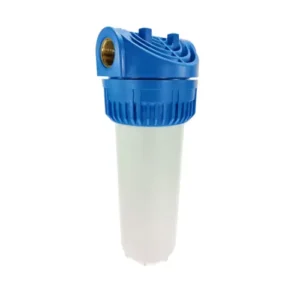 בית מסנן איכותי עם הברגות ¾ פליז, מסנן משקעים 25µ ומפתח לבית מסנן.
